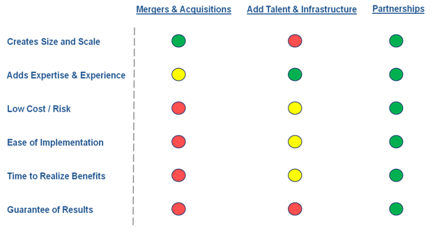 What are the options for improving your company’s “voice?” 1. Merger & Acquisition to improve you scale 2. Talent Acquisition to upgrade your Subject Matter Expertise. 3. Strategic Alliances/Partnerships to “Bundle” supply chain requirements.